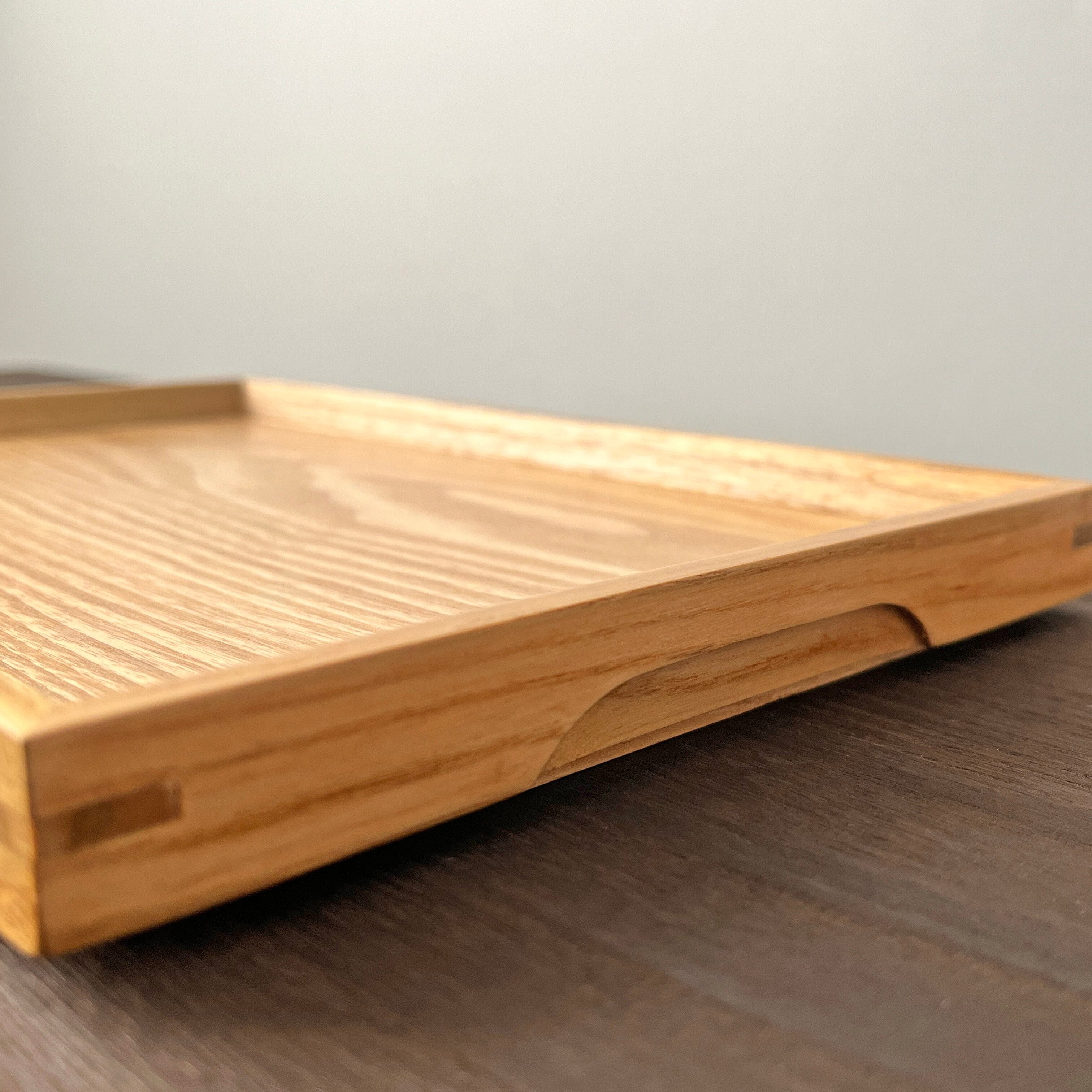 美しい木目の天然木を使用して作られた小ぶりのトレーです。