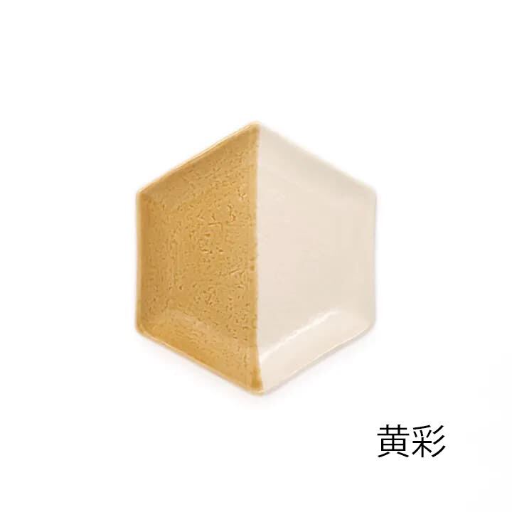 瀬戸焼の食器ブランドm.m.d.の「true colors line」シリーズから、六角形のお皿をご紹介します。