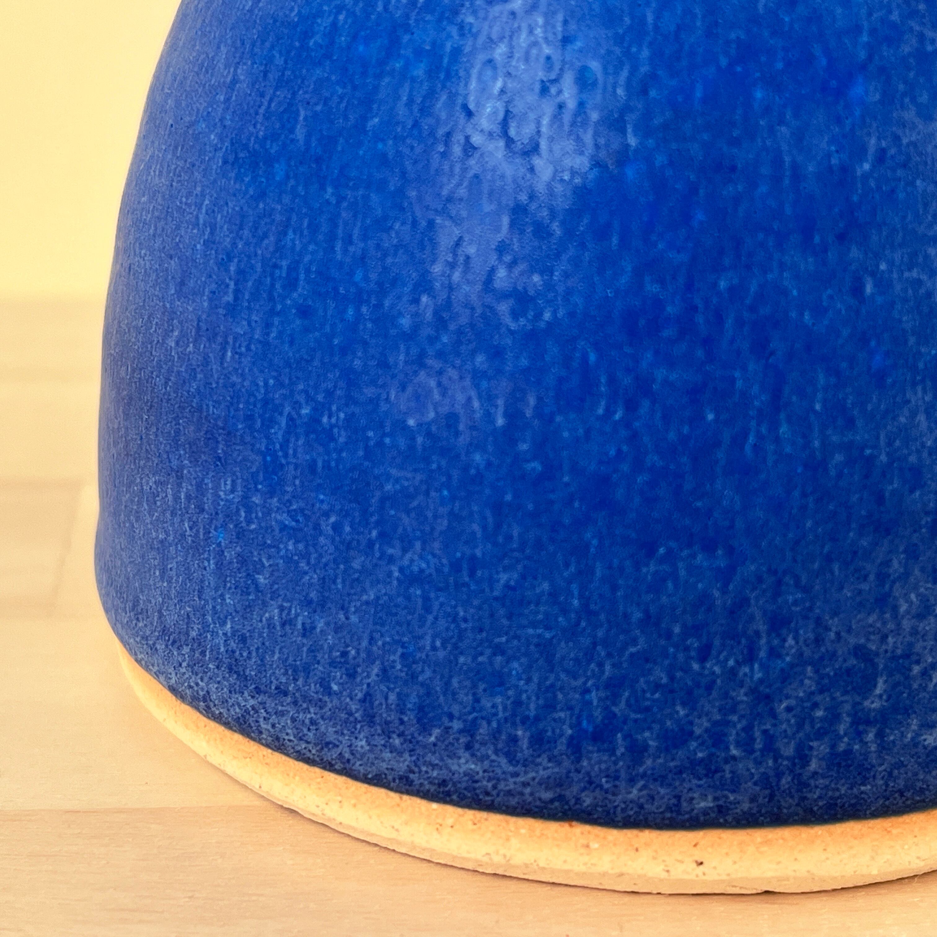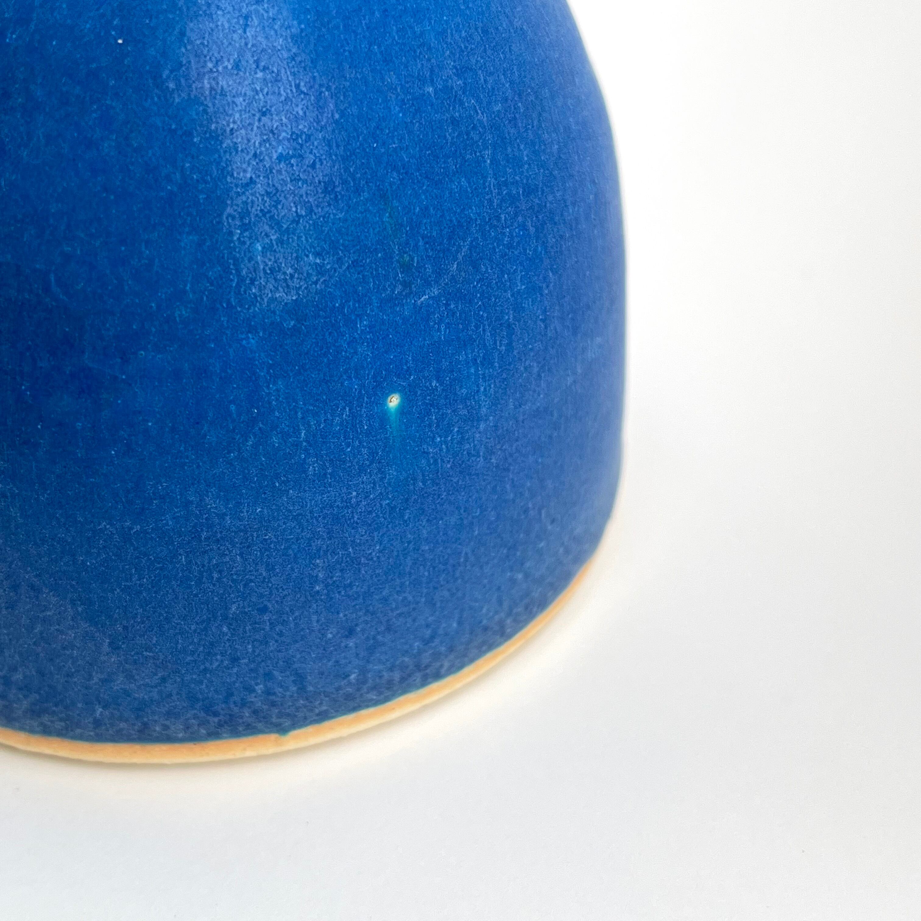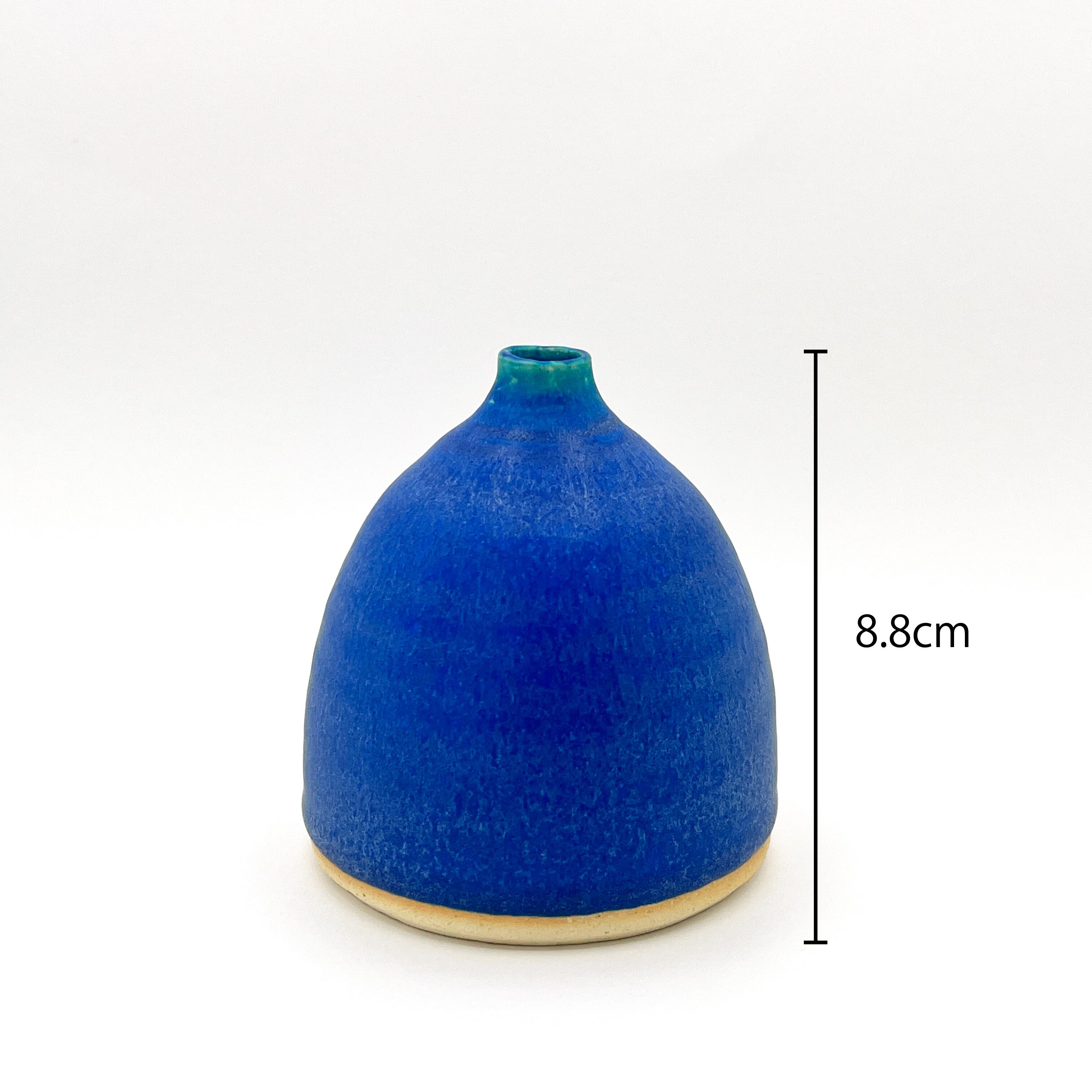 素朴な土の風合いと鮮やかな青い釉薬のコンビネーションが美しい一輪挿しです。